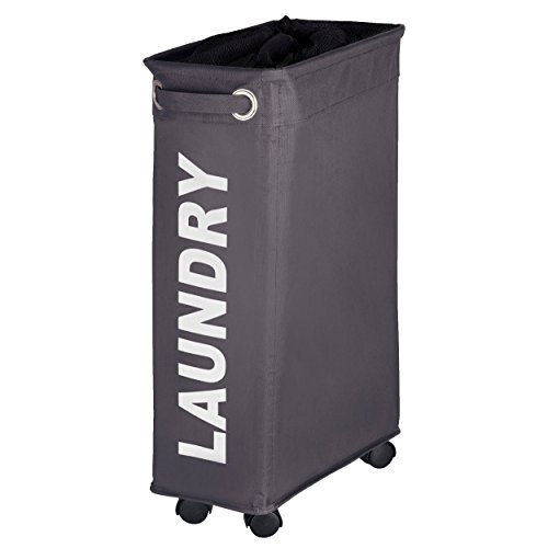 WENKO 3450115100 Laundry bin Corno Grey - laundry basket, capacity 11.36 gal, Polyester, 7.3 x 23.6 x 15.7 inch, Dark grey