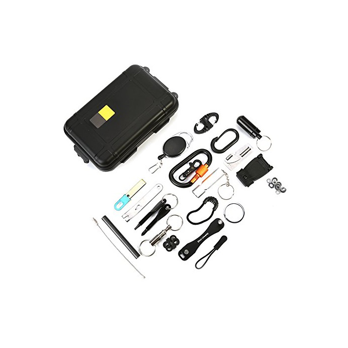 VGEBY 아웃도어 서바이벌 세트 서바이벌 툴 전22종류 서바이벌 키트 긴급 서바이벌 멀티 툴 만능 공구 응급 아웃도어 툴 휴대 수납 편리