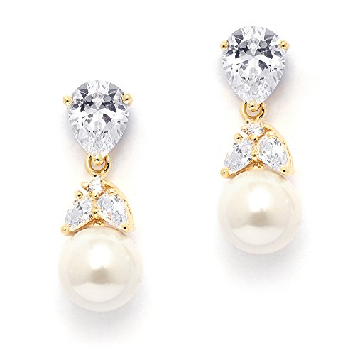 -. Title : Mariell Genuine 14K Gold Plated Pear-Shaped Cubic Zirconia Bridal Earrings with Ivory Glass Pearl Drops