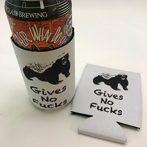 Honeybadger Gives No Fucks | Funny Novelty Can Cooler Coolie Huggie - Set of two (2) | Beer Beverage Holder - Beer Gifts Home - Quality Neoprene No Fade Can Cooler