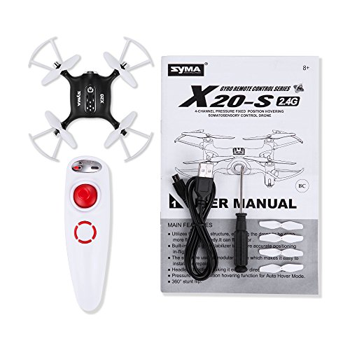 Studio : SYMA Publisher : SYMA Binding : Toy Product Description Key feature: * Somatosensory One Hand Control:Press down the gravity sensor button and tilt the transimitter in the direction ( forward/backward/ left /right side) you like. * Gravity Sensor: The mini pocket drone was equipped with a intelligent gravity sensor. The tile direction of the mini drone will consistent with the tile direction of the controller. * Altitude Hold Mode: Powerful air pressure altitude hold function of the Syma X20-S drone allows it to keep hovering or maintain a consistent altitude at the current height when you release the throttle stick. * 360°3D flip:The little drone could do 360-degrees rotation, continuous roll for perfect action and wonderful performance. Comes with 2 different speeds (high/low)and able to flip in 4 ways, left, right, forward and backward.