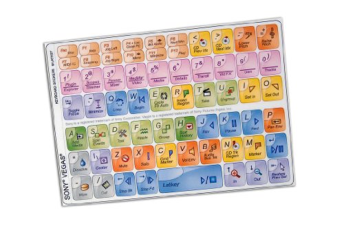 Keyboard shortcut keys (hotkeys) printed in color for Sony® Vegas®. Matt opaque film with protective covering to avoid premature wear-out.