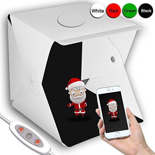 - Portable, folding, lightweight, space-saving ? Specification: Size: 17x16.2x16 inches Material: White Hard polypropylene Matte Film Power: USB Lights Strip: 2 x 35 PCS lights (70 LED) Brightness Adjustment: 10% 50% 100% Backdrops: White, Black, Red, Green 0 |