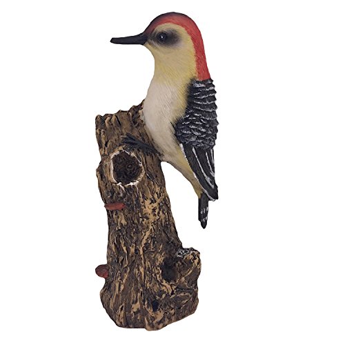 Beautiful Red Headed Woodpecker on a Tree Branch Bird Figurine 7 in Tall