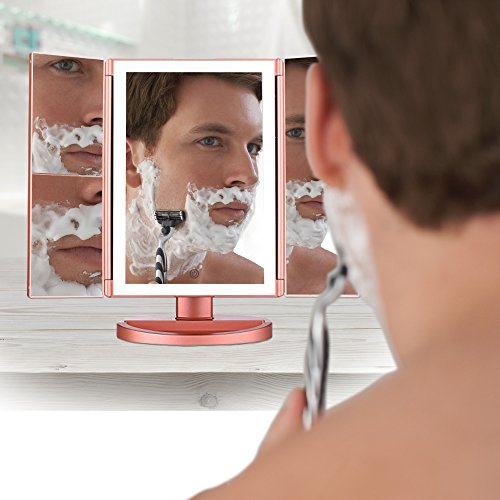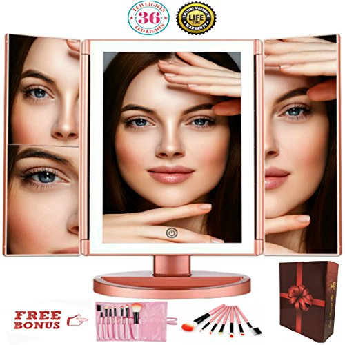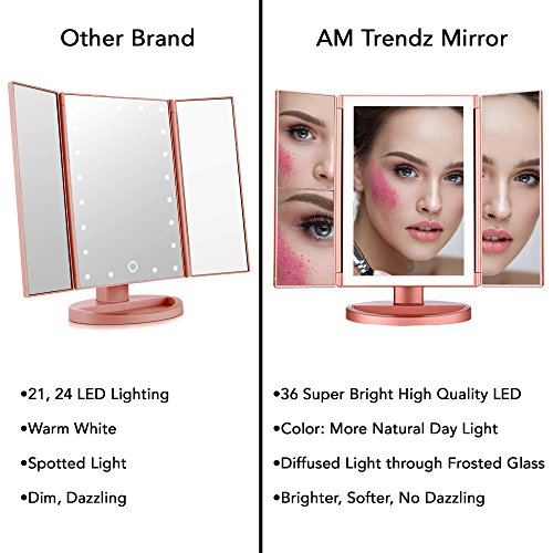 💓 LIGHT UP THE WORLD WITH YOUR BEAUTY - with this beautiful premium trifold illuminated vanity mirror . The upgraded 36 LED diffused light with frosted glass is unflappable on your face while providing brightest lighting for your makeup, Say Hello To Every Day Makeup! 🔦 Your search for the brightest mirror with the best quality and for the best value for your money is over.