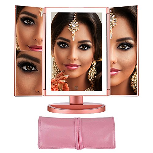 Lighted Vanity Makeup Mirror with LED Lights - Magnifying Mirror with 36 LED's - Tri Fold Lighted Cosmetic Mirror with Dual Power Touch Screen -Travel Mirror - Newer Version