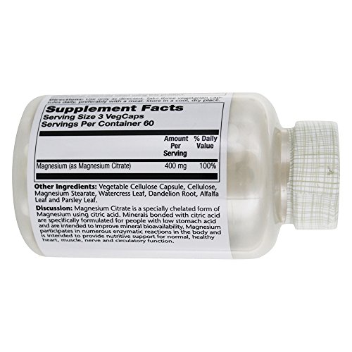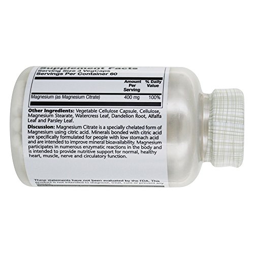 Non-GMO 100% Vegan Dietary Supplement Enhanced Absorption 400 mg Per Serving Lab VerifiedDiscussion: Magnesium Citrate is a specially-chelated form of Magnesium using citric acid. Minerals bonded with citric acid are specifically formulated for people with low stomach acid and are intended to improve mineral bioavailability. Magnesium participates in numerous enzymatic reactions in the body and is intended to provide nutritive support for normal, healthy heart, muscle, nerve and circulatory function.Feature