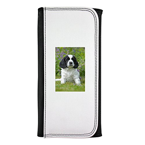 Close-up view of a puppy sitting on grass, Sweden. leatherette wallet!
