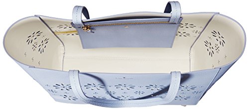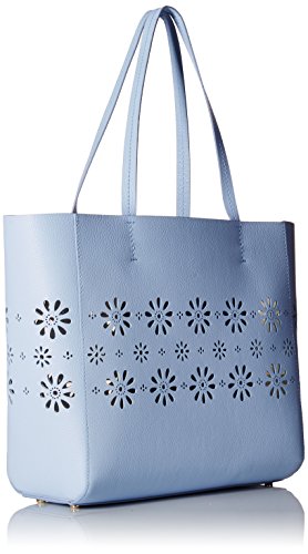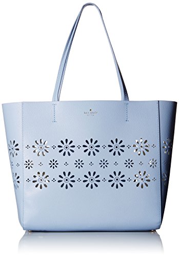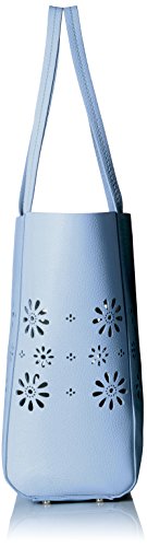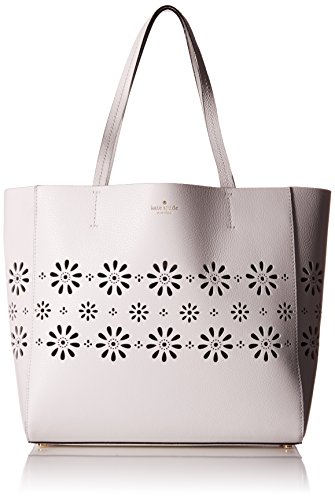 Unlined leather tote featuring floral cutouts and four metallic feet