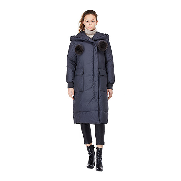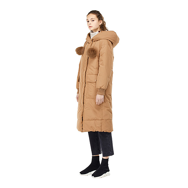 - 폭스퍼 방울 장식 디테일이 돋보이는 캐주얼한 무드의 다운 점퍼