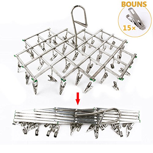 -. Title : LEF Stainless Steel Foldable Drying Rack Swivel Clothes Hook Hanger with 35 Clips - BONUS 15 Clips for Drying Underwear Bra Sock Towel Gloves Diapers