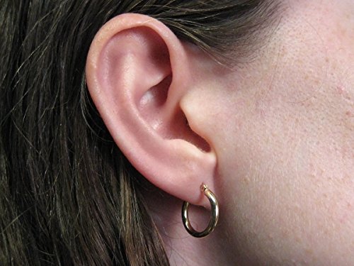 -. Title : 14K Yellow Gold Tube Hoop Earrings with Click-Down Clasp, (2mm Tube)