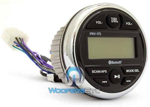 PRV 175 AM/FM/USB/Bluetooth Gauge Style StereoAll-Environment Multimedia Stereo ReceiverJBL's PRV 175 marine digital media receiver will change the way you listen to music on your boat - without forcing you to cut or change your boat.This digital media receiver packs a lot of features into a compact design that fits into a standard tachometer opening. You'll enjoy AM/FM radio, of course, plus built-in Bluetooth that lets you stream music from your Android phone. You can also use the rear aux input for your music player, or plug a thumb drive into the rear USB port to enjoy your favorite music files.The PRV 175 includes a set of rear-mounted preamp outputs, so you can expand your system with a marine amp in the future. The LED display tells you what you're listening to with just a glance, while the watertight, UV-stable face and controls will stand up to sun, salt and moisture when you're riding the waves.Features:Marine digital media receiverAM/FMBuilt-in Bluetooth Audio StreamingPower: 4 x 45 watts peakRear aux inputRear USB input2-Channel rear preamp outputsMarine-rapid charging for iPhone, Droid, etc...Now works with all our hardwired & RF remotesAll aluminum heat sink1 pair of pre-outsWatertight faceWired/Wireless remote readyRapid charging through USB portUpgraded display.rated watertight faceWarranty: 1 year Wired Remote Capable NONE XM - Sirius Ready NONEFeature