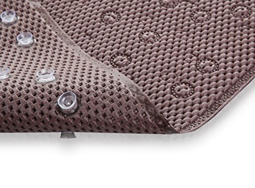 Our cushioned bathmat is great on your achy feet after a long day. Made from an anti-bacterial PVC and Polyester blend, this bathmat is mold and mildew resistant and has built in suction cups to keep it in place.