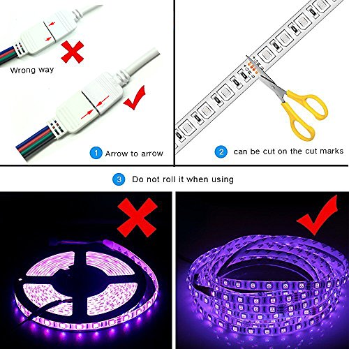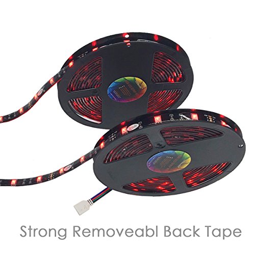 ✔ ALL IN ONE KIT: 2×Waterproof 16.4ft / 300leds SMD 5050 RGB LED strip + 1×Bluetooth Controller + 1× 12V 5A Power Supply +Free Fixing Accessories(20 clips)