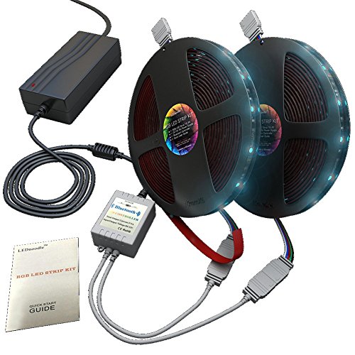 LEDnoodle 2 X 16.4Ft RGB Smart Waterproof Flexible Color Changing LED Rope light with 12V Power Supply Bluetooth Controller Timer and Fixing Clips, Sync with Music Multicolored for Home IOS Android