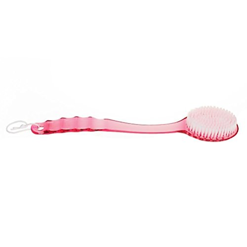 - Color: Mainly pink. - Material: Poly Styrene Artificail Fiber. - Size: 36* 7.5* 3CM. - Medium stiffness bristles give erasing stimulating and leave skin soft, smooth and glowing. - Use your favorite shower gel to create a stimulating bath and smooth the dead skin. - Excellent effect on the feet, knees, legs to rub and soften skin. - The handle has a convenient cord suspeion. -------------------------------------------------------- Package Including 1 * Bath Shower Back Brush Exfoliating Body Brush with Long Handle (Pink) 0