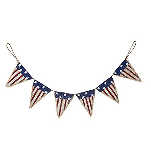 Patriotic American Flag Pennant Banner 47 Inches Long - Red, White and Blue Burlap and Jute
