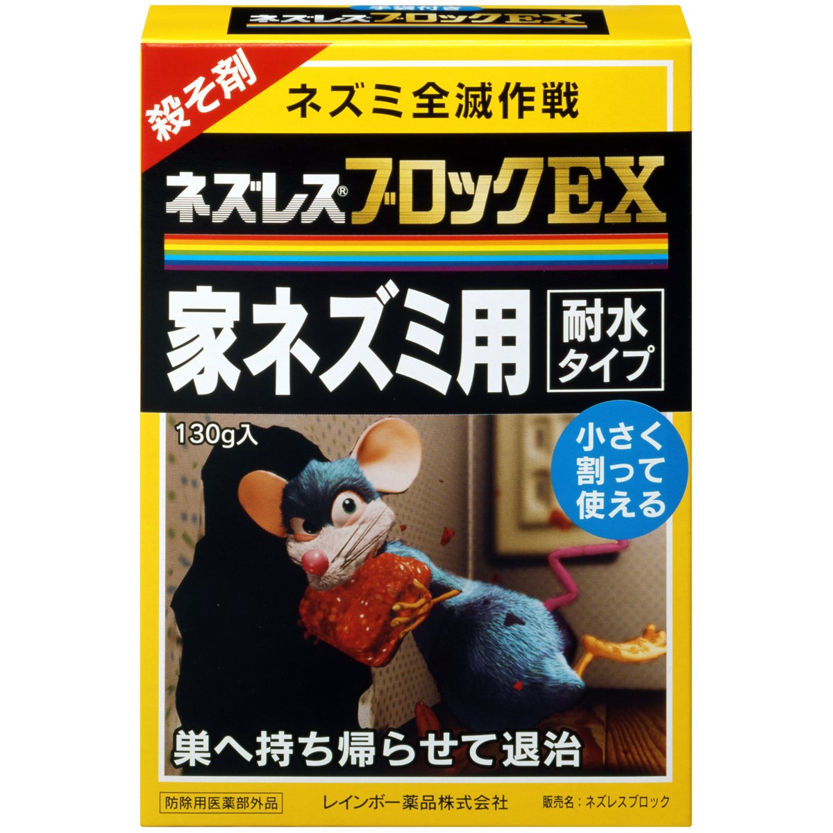"Nestless Block EX 130 g" is a block-type rodenticide of good meal type that combines three types of seeds preferred by carefully selected rats and an attractive ingredient luring by the smell.
