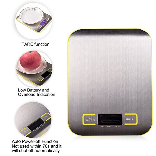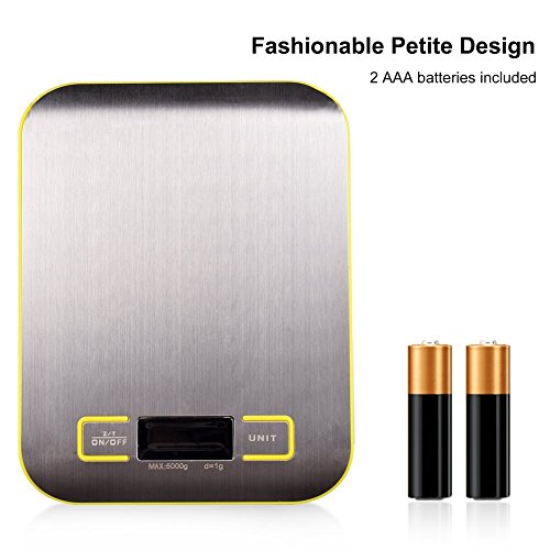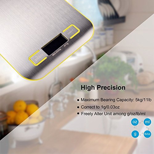 - High Precision- Equipped with high precision sensors to provide you accurate weight all the time. 5kg/11lb capacity, 0.01oz/1g division, Perfect for baking, cooking, postage and jewelry