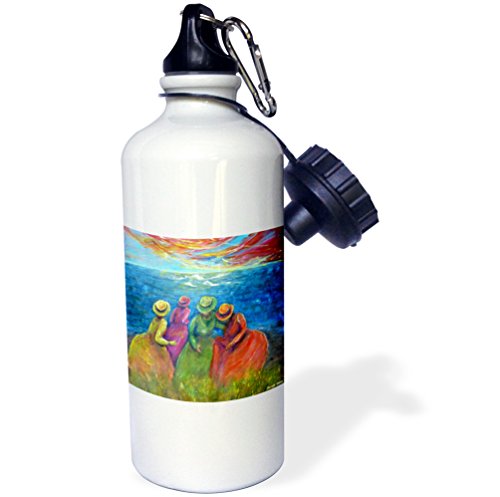 3dRose wb_66357_1 Frolic, 4 Seaside Sisters Visit The Seascoast Sports Water Bottle, 21 oz, White