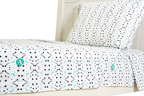 - Kuviez Moonlight fiesta, 4-piece full sheet set has a unique button fastening system that keeps it in place and encourages your child's Natural movement