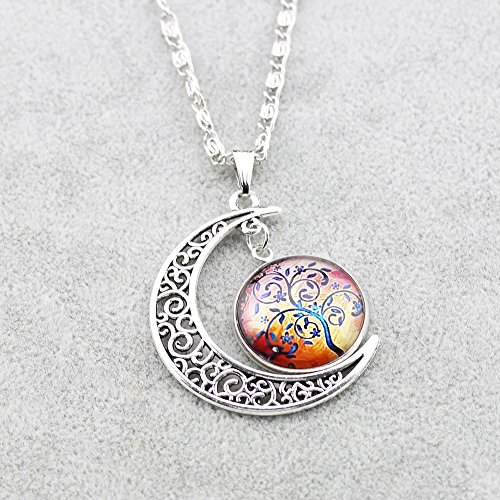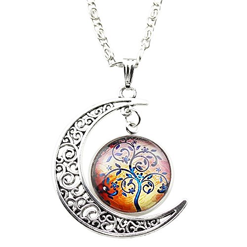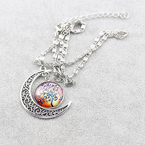 -. Feature : Material: alloy & glass / Tree of life shape. Size: approx. 20mm (0.8 inches) in diameter / Moon: approx. 1.4x1.2 inches / Chain length: approx. 16.5 inches + 2 inches extender / lobster claw clasp