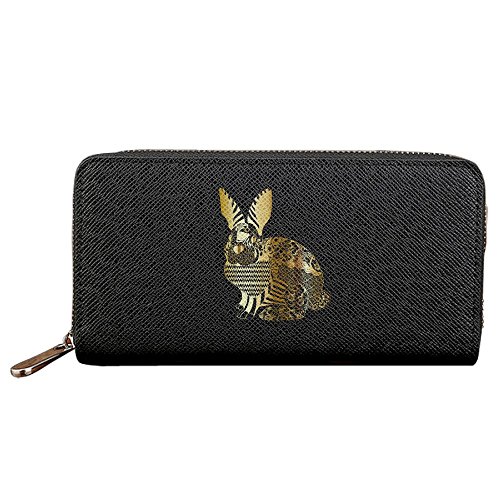 (JIANGY)/Accessories/Wallets, Money Key Organizers/DIRECT FROM USA/Gold Floral Rabbit Creative Men's PU Leather Long Zipper Wallet Purse