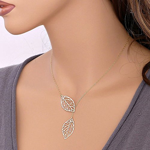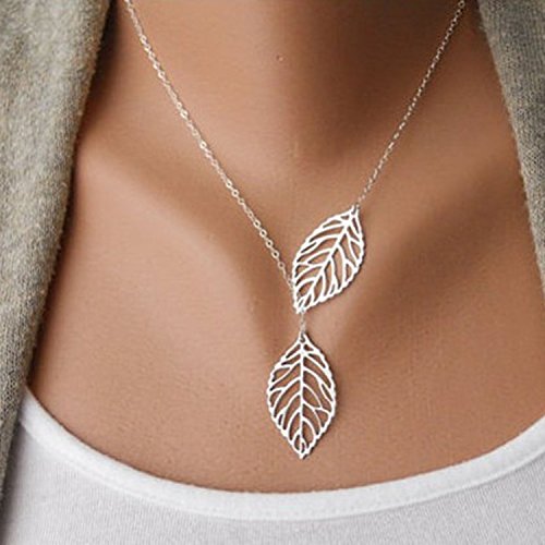-. Title : Nero Chic Double Leaves Necklaces Jewelry for Women, Necklace for Girls on Party, Evening and Casual (Silver)