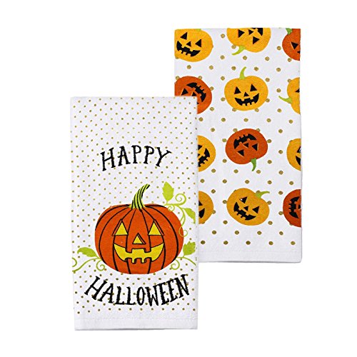 -. Feature : FESTIVE HALLOWEEN kitchen hand towels feature Happy Halloween coordinating holiday themed P.R.Ints / PERFECT COMPLIMENT to your Halloween kitchen décor / 2-PACK LARGE SIZE towels measure 16.5" x 26" (41.9 cm x 66 cm); great for any clean-up job / SUPER-ABSORBENT and durable 100% cotton terry cloth construction will make them lasting favorites / EASY-CARE machine washable; tumble-dry low