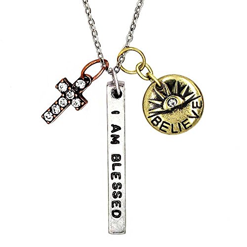 -. Title : Simple Truths 'I Am Blessed, Chosen, Redeemed, And Forgiven' Pendant Necklace - Three Tone Charm Necklace With Delicate Crystal Cross And Engraved Sunrise Charm - Great Sports Fan Pendant Gift