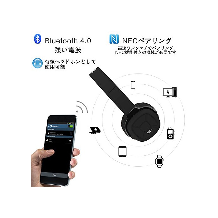 원본상품명: AIKAQI ワイヤレス ステレオヘッドホン NFC搭載 ??計機能 密閉ダイナミック型 高音質 折りたたみ ハンズフリ?通話 ブル?トゥ?ス ヘッドセット NB-6