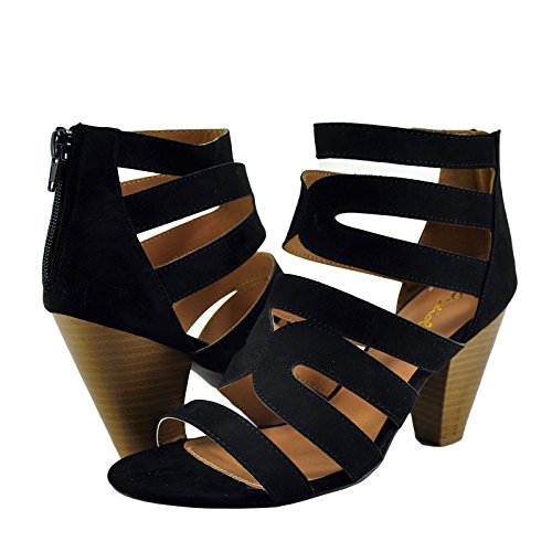 Product DescriptionStay trendy with these adorable versatile caged heels called Chamber-26X by Qupid! Featuring, Soft faux suede upper, Open-toe design, Back zipper closure, Lightly cushioned footbed, Sturdy stacked heel.0