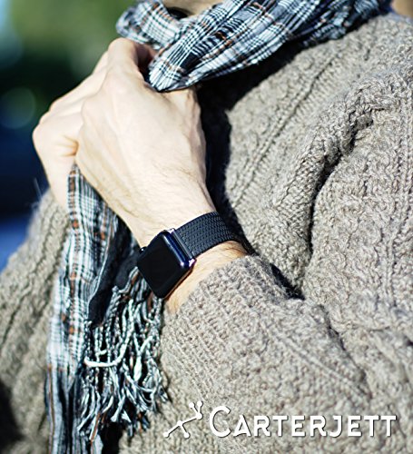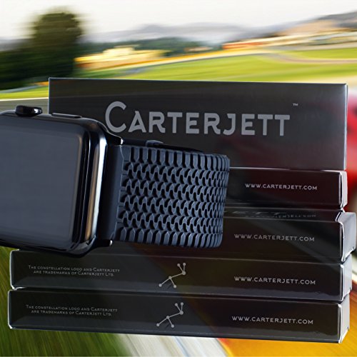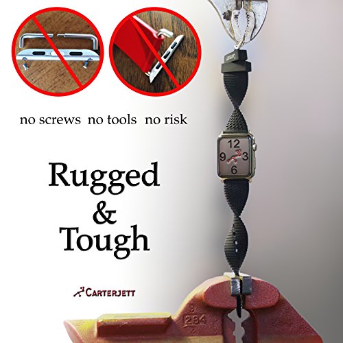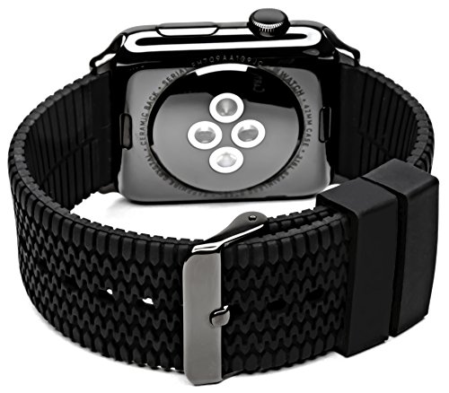 Apple Watch Band 42mm TIRE TREAD Sport Silicone iWatch Band / Rugged Black Rubber Straps with Space Black Adapters for Apple Watch Series 2, Series 1, Sport & Edition by CARTERJETT (S/M)