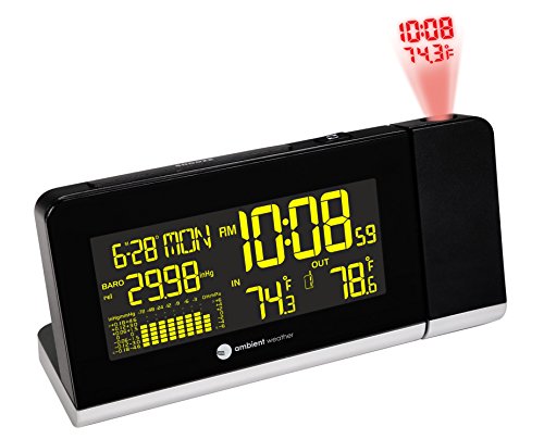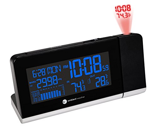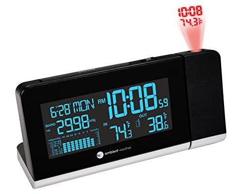 The colorful WS-8460 wireless weather station featuring Ambient backlighting and projection time and temperature is easy to read from any distance. The backlight color changes with the temperature.
