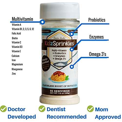 -. Binding : Grocery -. Brand : KidzSprinkles -. Department : childrens -. EAN : 0853930001179 -. Feature : Undetectable Taste: Perfect for filling nutritional gaps in picky diets. Just a couple of secret shakes can boost the nutrition of practically any meal with no negotiating, scrunchy faces or temper tantrums. / No Added Yucky Stuff: We care about your kids, so you won't find the sugar, fillers, colors, preservatives, or other ingredients most kids' gummies & chewables have. (Scroll to description for full list.) / 4-in-1 Supplement: More than a multivitamin with 4 billion probiotics, essential omega 3's, digestive enzymes, iron & D3. The most complete children's supplement available. / Doctor Developed: Formulated to support a healthy immune system, support brain function & concentration, aid in proper digestion & contribute to stronger bones. / 3 Times the Quantity + Money-Back Guarantee: Each bottle provides a 90-day supply for the same price most charge for 30 days. Give these flavorless vitamins a try. If your kids turn up their noses, we'll refund your purchase. -. IsAdultProduct : 0 -. Label : KidzShake -. Manufacturer : KidzShake -. PackageQuantity : 1 -. ProductGroup : Health and Beauty -. ProductTypeName : MISC_OTHER -. Publisher : KidzShake -. Size : 5.50 oz. -. Studio : KidzShake -. Title : Kids Multivitamin + Probiotics, Omega 3s, Iron, & Vitamin D -. UPC : 853930001179
