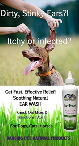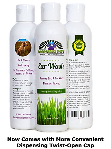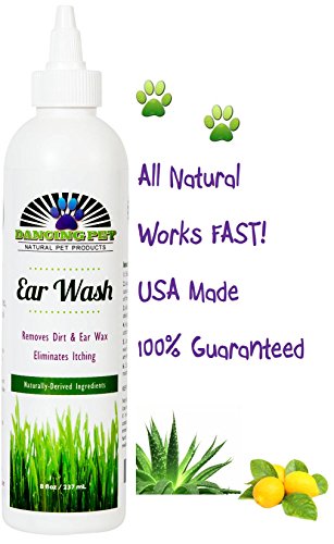 Dancing Pet Ear Wash for Dogs Cats - Natural Cleaner Rids Debris from Mites, Infections, Wax - Fast Guaranteed Otic Treatment Beats Powders, Wipes, Ointment, Relieves Pain Itching Odor, No Sting 8 Oz.