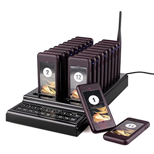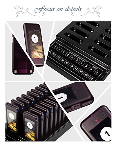 TIVDIO T-111 Wireless Calling System Paging System Portable Rechargeable Guest Waiting Pager Calling System with 20pcs Coaster Pager and 1pc Call Button Keypad for Restaurant Clinic Church Cafe Shop