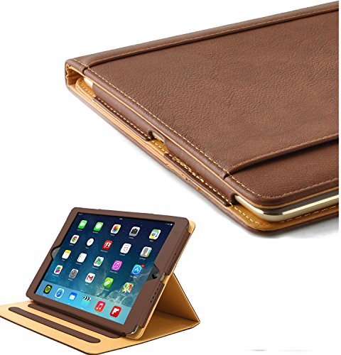 New S-Tech Apple iPad AIR 2 Brown Soft Leather Wallet Smart Cover with Sleep / Wake Feature Flip Case