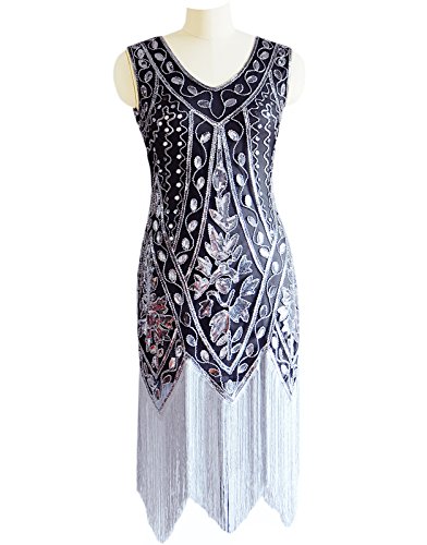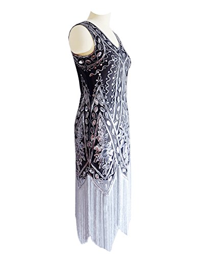 Miuco Women's 1920s Sequined Beaded Fringed Flapper Gatsby Evening Dress Size X-Large Gray