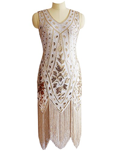 Miuco Women's 1920s Sequined Beaded Fringed Flapper Gatsby Evening Dress Size X-Large Gold