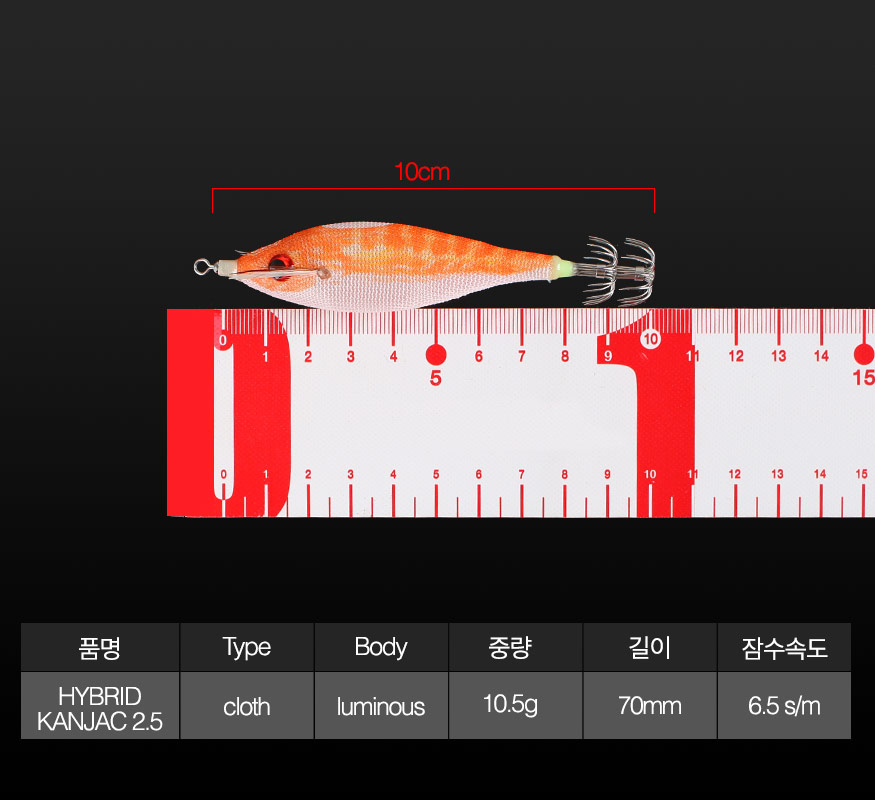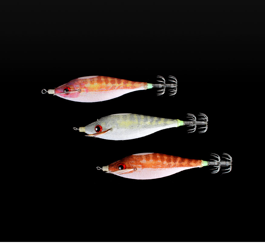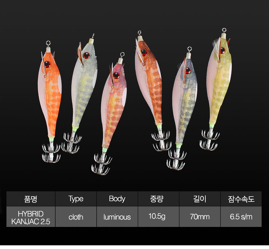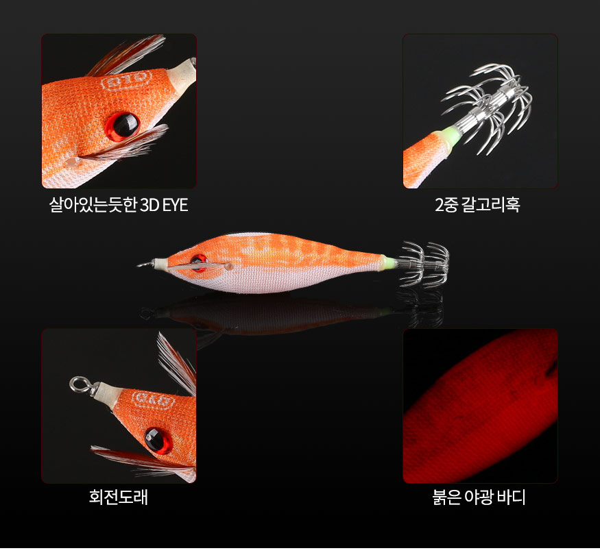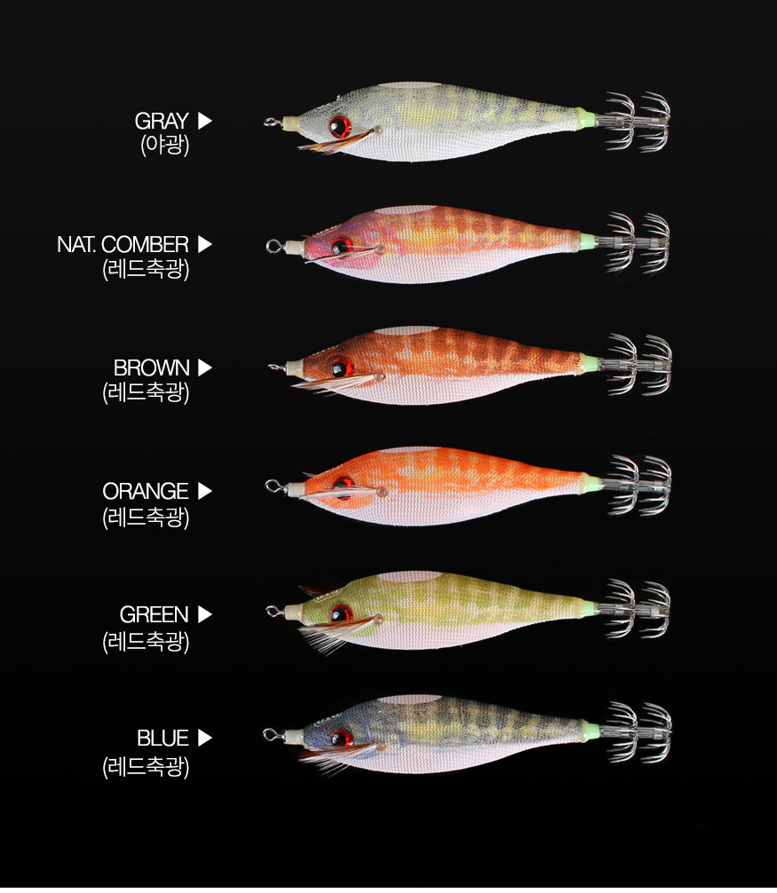 부상당한 물고기를 형상화 하여 오징어를 유혹하는 에기스텐다드 BUKVA모델과 소프트 모델간의 하이브리드 에기