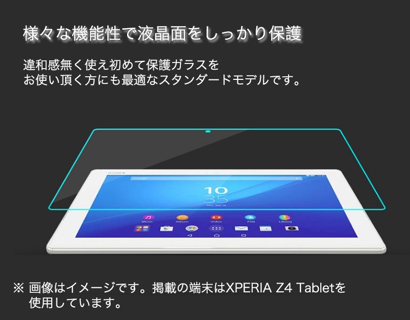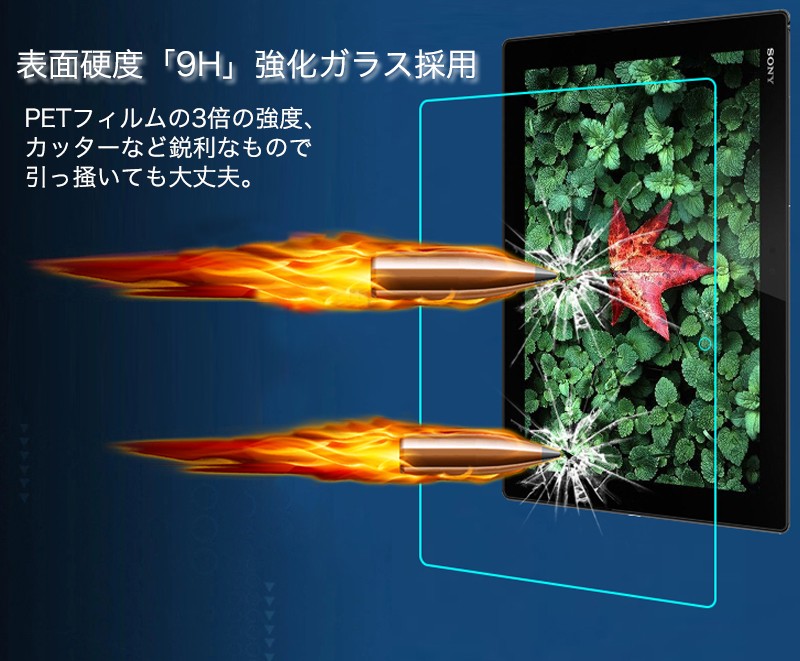 ★「対応機種」XperiaZ2Tablet、XperiaZ4Tablet★「商品特徴」違和感無く使え初めて保護ガラスをお使い頂く方にも最適なスタンダードモデルです。新ガラスフィルム素材を採用、映像透過度95%を実現しています。汚れにも強く、水滴、指の脂や化粧品などが付着しても軽くひと拭きで綺麗に拭き取れます。PETフィルムの3倍の強度、カッターなど鋭利なもので引っ掻いても大丈夫。摩擦をほぼ感じない滑らかな表面加工で、ディスプレイの最大のパフォーマンスを発揮します。★「キーワード」XperiaZ2Tablet XperiaZ4Tablet ガラスフィルム 強化ガラス 9H硬度 耐衝撃 高透過率 超薄 飛散防止加工 液晶保護 フィルム