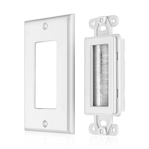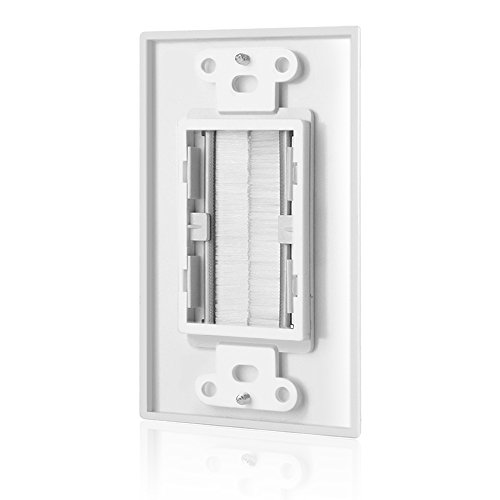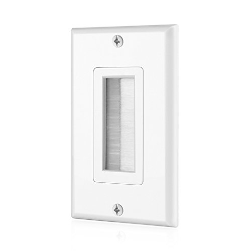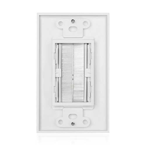 This single gang wall plate with brush bristles allows for a clean, tidy, and professional look for your outlets. The wall plate allows the cables running behind your walls to exit the wall and connect to your devices. The aperture is large enough for VGA, HDMI, Cat5e/6 and other types of cables, creating a unified and organized home theater setup.