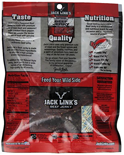 Jack Link's Beef Jerky, Peppered, 3.25-Ounce Bags (Pack of 4)