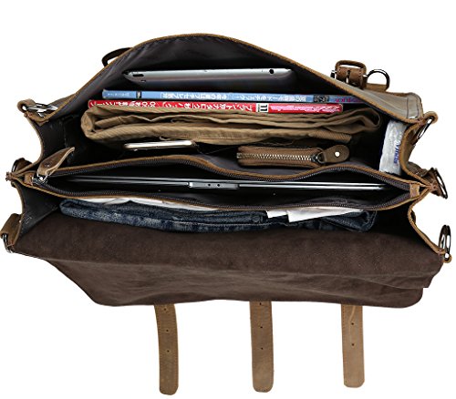 -. Binding : Personal Computers -. Brand : Tiding -. Department : mens -. Feature : 100% Cowhide leather, High quality Crazy-Horse leather / Approximate External Dimensions: 17 x 13 x 7.8 inch / Main pocket can hold 17" laptop,not the zip pocket / Interior cellphone holder,wallet holder,adjustable shoulder strap / Can be used as a briefcase, laptop bag, messenger bag, backpack or handbag -. ProductGroup : PC Accessory -. ProductTypeName : CARRYING_CASE_OR_BAG -. Title : Tiding Men's Crazy Horse Leather Backpack Saddle Laptop Tote Bag