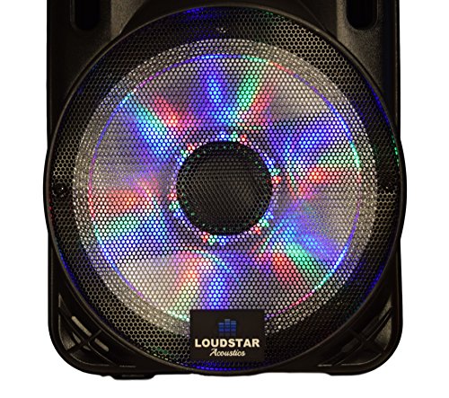 -. Title : Portable Speaker 12" 1300W PA System, 2 Wireless Microphones, Bluetooth, Rechargeable, LED