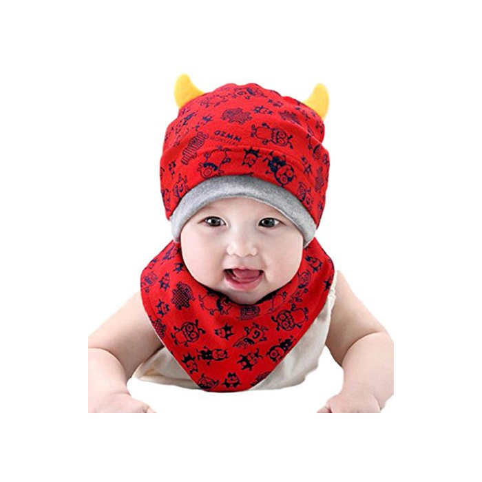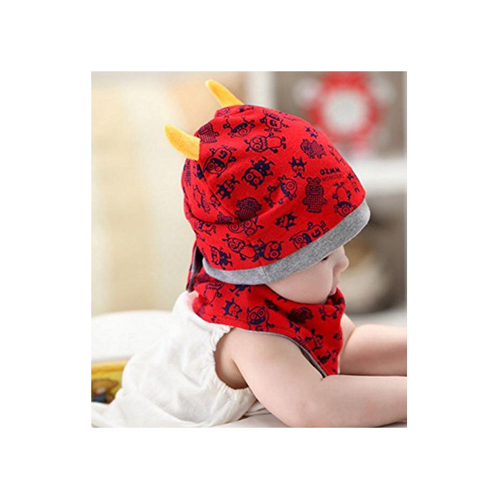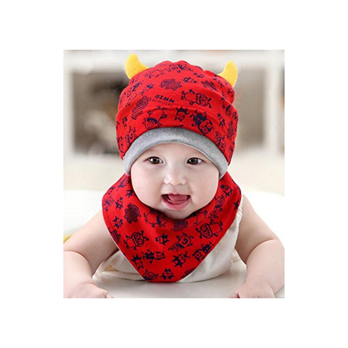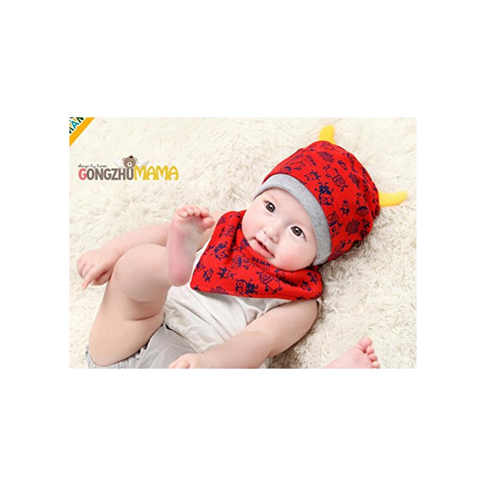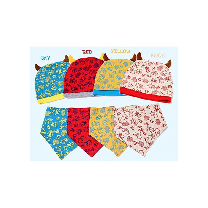 (K 그라《소》)K-grasso+ 베이비 모자 + 스타이(유아용 턱받이) 2점 세트 귀여운 몬스터 체격 각부착 프라이즈 선물 출산 축하 기프트 축하 신생아 키즈 모자 캡 (