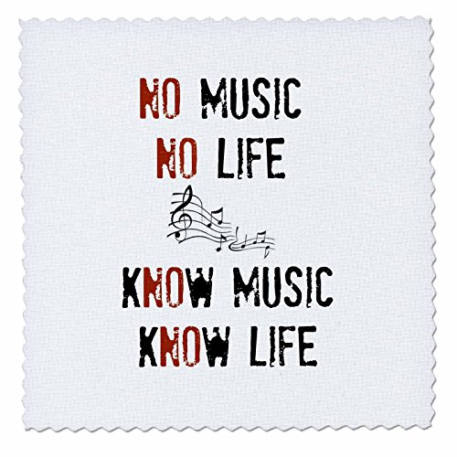 3dRose No Music No Life Know Music Know Life Picture of Music Notes - Quilt Square, 12 by 12-Inch (qs_201977_4)