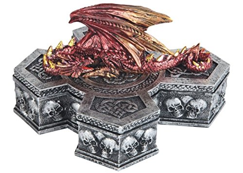 StealStreet Winged Dragon Cross Trinket Box, 7", Red and Silver